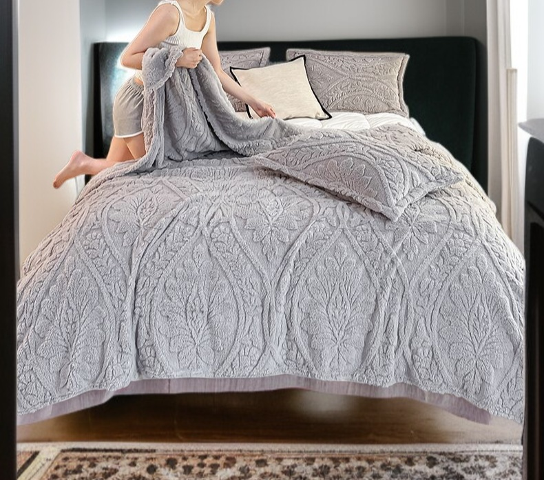 ملاءة سرير من صوف التفتا على الطراز الأوروبي مع صوف إضافي وملاءة لحاف من صوف الحليب السميك